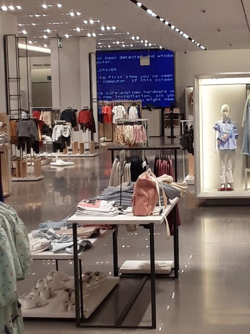 Haha saw a Blue Screen of Death at a Zara while passing by. Patch your Windows 95 dude